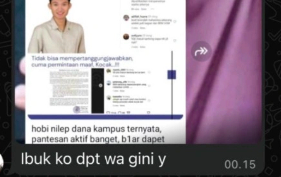 Tiyo menyampaikan bahwa pada Sabtu malam, 14 Februari 2026, ibunya menerima pesan melalui aplikasi WhatsApp dari nomor tak dikenal. Pesan itu berisi tudingan bahwa dirinya diduga menggelapkan dana kampus, termasuk dana penggalangan bagi mahasiswa penerima Kartu Indonesia Pintar. Pengirim juga menyertakan foto dirinya disertai narasi bernada intimidatif.