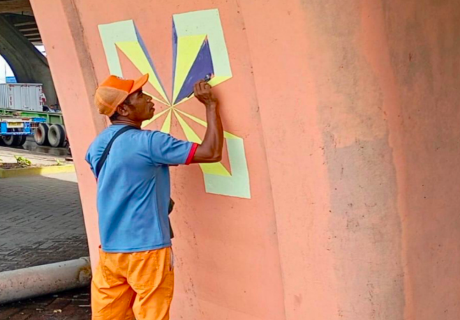 Sukarmin menjelaskan, pengerjaan ini dilakukan oleh 10 pasukan oranye sejak 5 November lalu, dan rampung 23 November 2025. Mural yang menghiasi pilar-pilar tersebut didominasi motif abstrak. Selain itu, terdapat pula gambar pelabuhan, pantai, Monas, rumah joglo, dan lainnya.