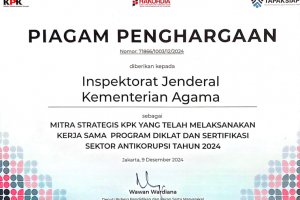 nusakini.com, Jakarta --- Inspektorat Jenderal Kementerian Agama menerima apresiasi sebagai mitra strategis dalam kegiatan Temu Aksi Penyuluh Anti Korupsi dan Ahli Pembangunan Integritas (TAPAKSIAPI) Tahun 2024 yan...