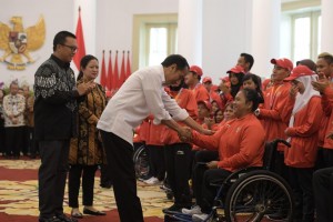 nusakini.com - Bogor - Presiden Joko Widodo (Jokowi) menyerahkan bonus bagi atlet-atlet Indonesia peraih medali Asian Para Games 2018, di Istana Kepresidenan Bogor, Jawa Barat, Sabtu (13/10) siang.Penyerahan bonus dilaku...