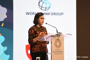 nusakini.com-Nusa Dua-Menteri Keuangan (Menkeu) Sri Mulyani Indrawati bersama Presiden World Bank Group Jim Yong Kim, Menteri Pekerjaan Umum dan Perumahan Rakyat (PUPR) Basuki Hadimuljono, Secretary of Budget and Managem...