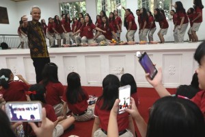 nusakini.com-Semarang – Gubernur Jawa Tengah H Ganjar Pranowo SH MIP digeruduk puluhan siswa dari Yayasan Karangturi, Semarang, di rumah dinas Puri Gedeh. Mereka adalah personel Karangturi Choir, yang berhasil menjadi ja...