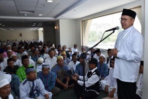 nusakini.com--Mengenakan kopiah hitam, berbalut baju putih dan sarung batik menjadi pilihan Menteri Agama Lukman Hakim Saifuddin saat menghabiskan senja di Masjidil Haram. Ajakan swafoto dari jemaah di sepanjang perjalan...