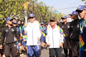 nusakini.com--Menteri Perindustrian Airlangga Hartarto menjadi pelari pertama yang membawa obor Asian Games 2018 di Kota Bandung, Jawa Barat, Sabtu (11/8). Titik awal torch relay atau kirab obor ini dimulai dari kawasan...