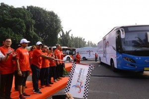 nusakini.com--Memaksimalkan promosi pariwisata Indonesia pada event Asian Games 2018, Menteri Pariwisata (Menpar) meluncurkan bus dengan branding logo Wonderful Indonesia (WI) dan Asian Games 2018 di Lapangan Monas, Sila...