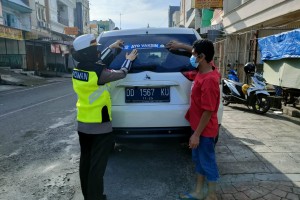 Dukung Percepatan Vaksinasi, Satlantas Polres Pelabuhan Makassar Bagikan Stiker Ayo Vaksin