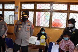Percepat Herd Immunity Pada Anak, Kapolres Pelabuhan Makassar Pantau Vaksinasi di Sekolah Dasar