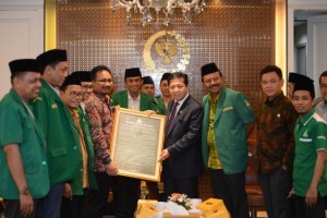 Foto/DPR nusakini.com - Ketua DPR RI Setya Novanto menerima Pengurus Pusat GP Ansor di ruang tamu Pimpinan DPR RI pada Selasa (11/04/2017). Hadir dalam pertemuan tersebut Ketua Umum PP GP Ansor Yaqut Cholil Q...
