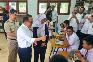 nusakini.com, Menteri Koordinator Bidang Pembangunan Manusia dan Kebudayaan (Menko PMK), Pratikno bersama Penjabat (Pj) Gubernur DKI Jakarta, Teguh Setyabudi meninjau langsung pelaksanaan program Makan Bergizi Gratis (MB...