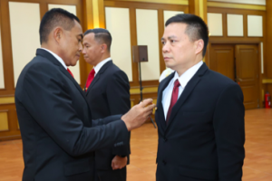nusakini.com, Jakarta – Sekretaris Jenderal Kementerian Pertahanan Republik Indonesia (Sekjen Kemhan RI) Mayjen TNI Tri Budi Utomo memimpin Upacara Pelantikan, Pengangkatan Sumpah dan Serah Terima Jabatan (Sertijab) Kepa...