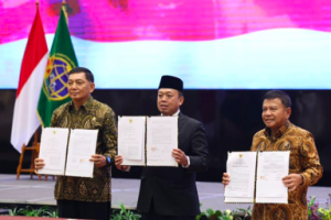 nusakini.com, Jakarta – Menteri Pertahanan RI Sjafrie Sjamsoeddin bersama Menteri Agraria dan Tata Ruang/Kepala Badan Pertanahan Nasional (ATR/BPN) Nusron Wahid melakukan Penandatanganan Nota Kesepahaman antara Kementeri...