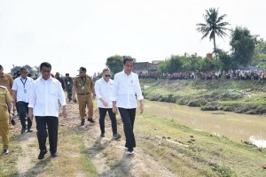 LAMPUNG -- Presiden Joko Widodo (Jokowi) didampingi Menteri Pertanian (Mentan) Andi Amran Sulaiman melakukan peninjauan terhadap program pemberian bantuan pompa untuk pengairan sawah dan pertanian atau pompanisasi di Des...