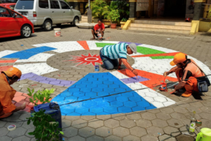 nusakini.com - Jakarta - Menyambut perhelatan Asian Games 2018, kantor Kelurahan Mangga Dua Selatan, Sawah Besar, Jakarta Pusat berhias. Cat warna warni disematkan di beberapa bagian kantor, termasuk pembuatan logo Asian...