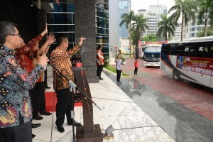nusakini.com - Jakarta - Kementerian Hukum dan HAM kembali menggelar Mudik Bareng Keluarga Besar Kemenkumham Tahun 2018. Di hari akhir cuti bersama, Jumat 6 Juni ini di halaman Kantor Kementerian Kuningan Jakarta selatan...