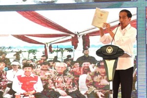 nusakini.com--Presiden Joko Widodo (Jokowi), Sabtu (23/12), menyerahkan secara serentak 705.194 sertifikat tanah untuk rakyat di lima provinsi, yaitu Sumatra Barat, Bengkulu, Jawa Tengah, DI Yogyakarta dan Sulawesi Tengg...