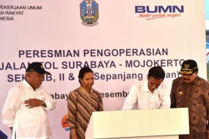 nusakini.com--Presiden Joko Widodo kembali meresmikan salah satu proyek infrastruktur yang ada di Tanah Air. Kali ini jalan tol Surabaya-Mojokerto seksi IB, II, dan III ruas Sepanjang-Krian dengan total panjang 15,47 kil...
