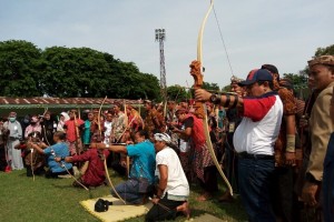 nusakini.com--Ratusan peserta dari berbagai daerah seperti Solo, Yogyakarta, Jawa Barat dan Jawa Timur mengikuti lomba jemparingan (panahan) tradisional ‘gaya mataraman’ dengan mengenakan pakaian adat jawa di lapangan Ka...