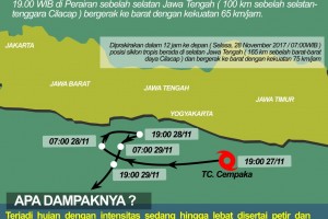 nusakini.com - Jakarta - Tepat pada hari Senin 27 November 2017 pukul 19.00 WIB BMKG berhasil mendeteksi siklon tropis yang tumbuh sangat dekat dengan pesisir selatan Pulau Jawa dengan nama "CEMPAKA".Adanya Siklon Tropis...