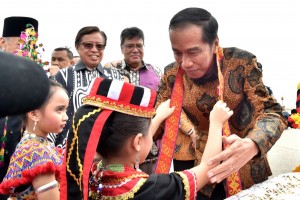 nusakini.com--Suasana cerah menyambut kedatangan Pesawat Kepresidenan Indonesia-1 yang membawa Presiden Joko Widodo dan rombongan di Bandar Udara (bandara) Internasional Kuching, Malaysia, Rabu (22/11). Presiden disambu...