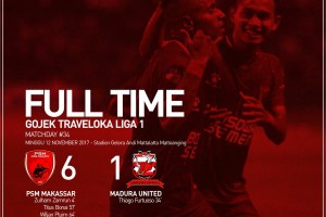 nusakini.com - Makassar - PSM Makassar berhasil menuai kemenangan besar pada laga terakhir mereka di Liga 1 2017. Itu setelah, mereka membungkam Madura United dengan skor 6-1 di Stadion Andi Mattalatta, Makassar, Minggu...