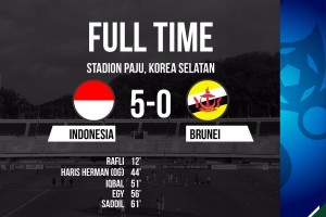 nusakini.com - Paju - Timnas U-19 Indonesia menggilas Brunei Darussalam 5-0 di laga pertama Grup F babak Kualifikasi Piala Asia U-19 2018 di Stadion Paju Public, Paju, Korea Selatan, Selasa (31/10) siang WIB. Kemenang...