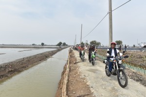 nusakini.com - Bekasi - Presiden Joko Widodo (Jokowi) mengendarai motor trail sejauh sekitar 2 kilometer saat meninjau lokasi tambak udang dan bandeng di Desa Pantai Bakti, Kecamatan Muara Gembong, Kab Bekasi, Prov Jawa...