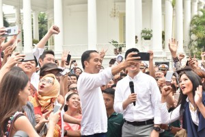 nusakini.com - Jakarta - Presiden Joko Widodo (Jokowi) menghadiri acara Peringatan Hari Sumpah Pemuda, yang diikuti oleh ratusan komunitas pemuda, dan pemuda kreatif, di halaman Istana Kepresidenan Bogor, Jawa Barat, Sab...