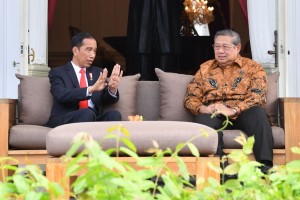 nusakini.com--Presiden Joko Widodo menerima kunjungan Presiden ke-6 Republik Indonesia (RI) Susilo Bambang Yudhoyono di Istana Merdeka, Jumat (27/10) siang. Tiba pukul 14.05 WIB, SBY disambut oleh Menteri Sekretar...