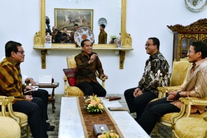 nusakini.com - Jakarta - Presiden Joko Widodo (Jokowi) hari ini, Rabu (25/10/2017), menerima kunjungan Gubernur dan Wakil Gubernur DKI Jakarta Anies Baswedan dan Sandiaga Uno di Istana Merdeka, Jakarta. Dalam pertemuan y...