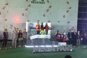 nusakini.com--Merah putih berkibar dan lagu Indonesia Raya berkumandang di Tehran Mega Pars Complex saat atlet nasional panjat tebing Indonesia, Puji Lestari berhasil menyabet medali emas pada katagori Speed putri menga...