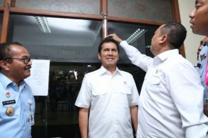 nusakini.com--Menteri Pendayagunaan Aparatur Negara dan Reformasi Birokrasi (PANRB) Asman Abnur menyempatkan diri meninjau pelaksanaan Seleksi Kompetensi Dasar (SKD) di lingkungan Kementeriam Hukum dan HAM di Kantor Regi...
