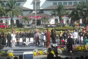 nusakini.com - Presiden Joko Widodo (Jokowi) dan Ibu Iriana Jokowi membuka Karnaval Kemerdekaan Pesona Parahyangan, di Bandung, Jawa Barat, Sabtu (26/8/2017).Pembukaan karnaval ditandai dengan pemukulan kohkol sebanyak 7...