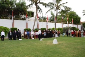 nusakini.com-- Pukul 09.00 pagi telah diselenggarakan Upacara Pengibaran Bendera Merah Putih bertempat di lapangan KJRI Karachi, Pakistan(17/08). Upacara dipimpin oleh Konsul Jenderal RI Karachi, Dempo Awang Yuddie selak...