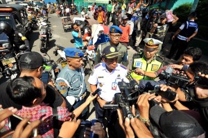 nusakini.com--Petugas gabungan dari jajaran dinas Pemerintah Kota (Pemkot) Surabaya, kepolisian, TNI dan jajaran Musyawarah Pimpinan Kecamatan (Muspika) melakukan penertiban puluhan becak motor dan becak yang biasa mangk...