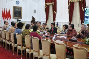 Foto/Seskab nusakini.com - Presiden Joko Widodo (Jokowi) didampingi sejumlah menteri Kabinet kerja menerima kunjungan Presiden Bank Dunia Jim Yong Kim beserta delegasinya di Istana Merdeka, Jakarta, Rabu (26/7/2017...