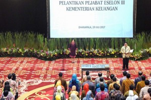 nusakini.com--Menteri Keuangan (Menkeu) Sri Mulyani Indrawati menghadiri pelantikan 226 pejabat eselon III di lingkungan Kementerian Keuangan pada hari ini Rabu (19/07) di Aula Dhanapala, Kementerian Keuangan, Jakarta. P...
