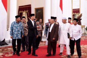Foto/Setpres nusakini.com - Presiden Joko Widodo (Jokowi) menerima lebih dari 30 ulama dari Pulau Sulawesi, di Istana Merdeka, Jakarta, Selasa (18/7/2017) sore. Kepala Negara yang didampingi Menteri Sekretaris Nega...