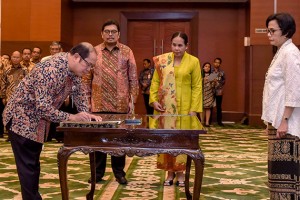 nusakini.com--Menteri Keuangan (Menkeu) Sri Mulyani Indrawati melantik 15 orang pejabat eselon I dan II di lingkungan Kementerian Keuangan bertempat di Aula Djuanda Kementerian Keuangan, Senin (03/07). "Sumpah yang telah...