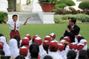 Foto/Setkab nusakini.com - Presiden Joko Widodo (Jokowi) menjadi pendongeng dalam acara Gemar Membaca dalam rangka Hari Buku Nasional, di halaman tengah Istana Merdeka, Jakarta, Rabu (17/5/2017) sore.Acara tersebut diha...