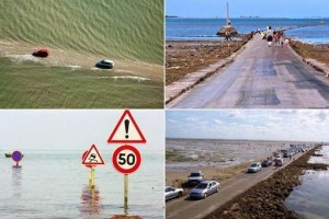 nusakini.com - Passage du Gois adalah causeway submersible (jalan di badan air yang setengah tenggelam) di Teluk Bourgneuf, menghubungkan pulau Noirmoutier ke daratan utama di Vendée, Prancis. Dua kali sehari, selam...