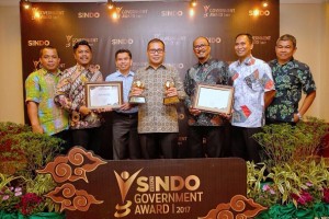 nusakini.com--Wali Kota Makassar Moh. Ramdhan Pomanto berhasil memboyong dua penghargaan sekaligus pada Penghargaan Sindo Weekly Government Award 2017, di Flores Ballroom, Borobudur Hotel, Jakarta, Selasa (4/4). D...