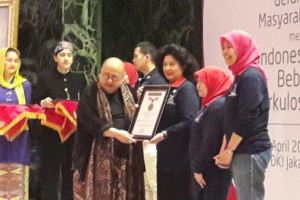 Foto/dok. Kemenkes nusakini.com - Menkes Nila F. Moeloek menerima penghargaan dari Museum Rekor Indonesia (MURI) atas rekor Edukasi dan Skrining Tuberkulosis secara Serentak di Lokasi dan Peserta Terbanyak pada Sab...
