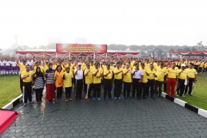 nusakini.com--Kepolisian Daerah Jawa Timur menggelar Olahraga Bersama TNI-Polri dan Forpimda Provinsi Jawa Timur. Bertempat di Lapangan Upacara Mapolda Jawa Timur, Jumat (24/3), acara tersebut mengusung tema “Melalui Ola...