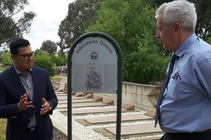 nusakini.com--Disertai angin sepoi dengan cuaca sedang, serta rasa haru yang mendalam, sore hari tanggal 18 Maret, Konsul Jenderal RI Yayan GH Mulyana, disertai Judi Smith Wakil Walikota, telah meletakkan karangan bunga...