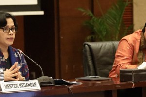 nusakini.com--Menteri Keuangan (Menkeu) Sri Mulyani Indrawati memberikan hasil pertemuan G-20 di Baden Baden, Jerman, pada konferensi pers yang diselenggarakan di aula Mezzanine, gedung Juanda I Kementerian Keuangan, Jak...