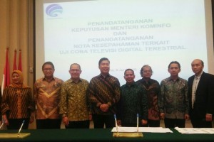 nusakini.com--Menteri Komunikasi dan Informatika Rudiantara menghadiri penandatangan Nota Kesepahaman antara Lembaga Penyiaran Publik (LPP) TVRI dengan 36 Lembaga Penyiaran Swasta (LPS) sebagai penyedia konten terkait Uj...