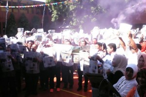 nusakini.com---Sebanyak 500 siswa SMAN 3 secara bersamaan membaca koran FAJAR usai pembukaan Porseni SMAN 3 Makassar, Kamis (2/6). Kepala sekolah SMAN 3, Mirdan Midding berharap, kegiatan unik ini bertujuan memicu minat...