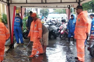 nusakini.com-Jakarta-Sebanyak 30 petugas PPSU Kelurahan Pinangsia, Kecamatan Taman Sari, Jakarta Barat, dikerahkan untuk mengatasi genangan setinggi lima sentimeter di Jalan Kunir, Pancoran dan Jalan Jembatan Batu, Jumat...